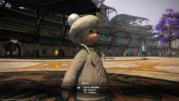 ヤ・シュトラに休むように言われた返答が選択肢になっていて、「マトーヤお母さん…」を選びたかったけれど、真面目なものを選んでしまうチキンハートなのでした…。