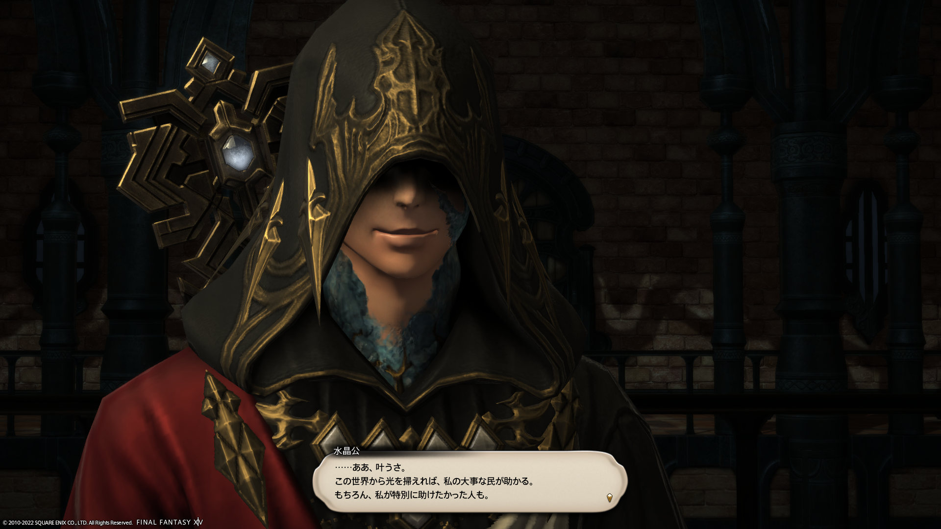 特別に思っている人がいると語る水晶公さん…たぶんそれって冒険者のことですよね…?本人目の前にして言っちゃうところがすごいわー。