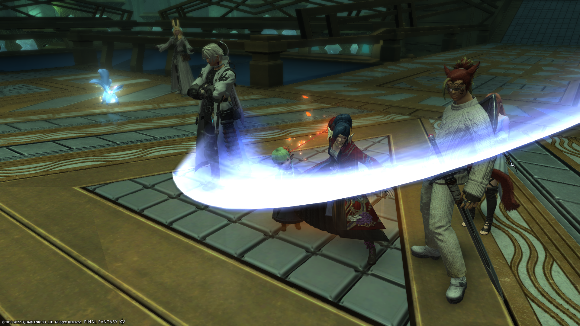 「水の手」を避けるのがへたっぴで、手が2列並んでいて、避けるために走って往復しないといけない状況の時に、途中で手に追いつかれて転がってしまうパターンが多かったです。ララフェル足短い!