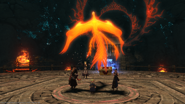 ということでいきなり転がっておりますが、極朱雀討滅戦というのが結構手強くて。そもそもLv80制限の8人用コンテンツに、Lv無制限とはいえ4人で挑んでいるのでわちゃわちゃして大変です。無制限と言えどわたくしLv86だし、他にもLv90未満の方はいらっしゃいますし。
