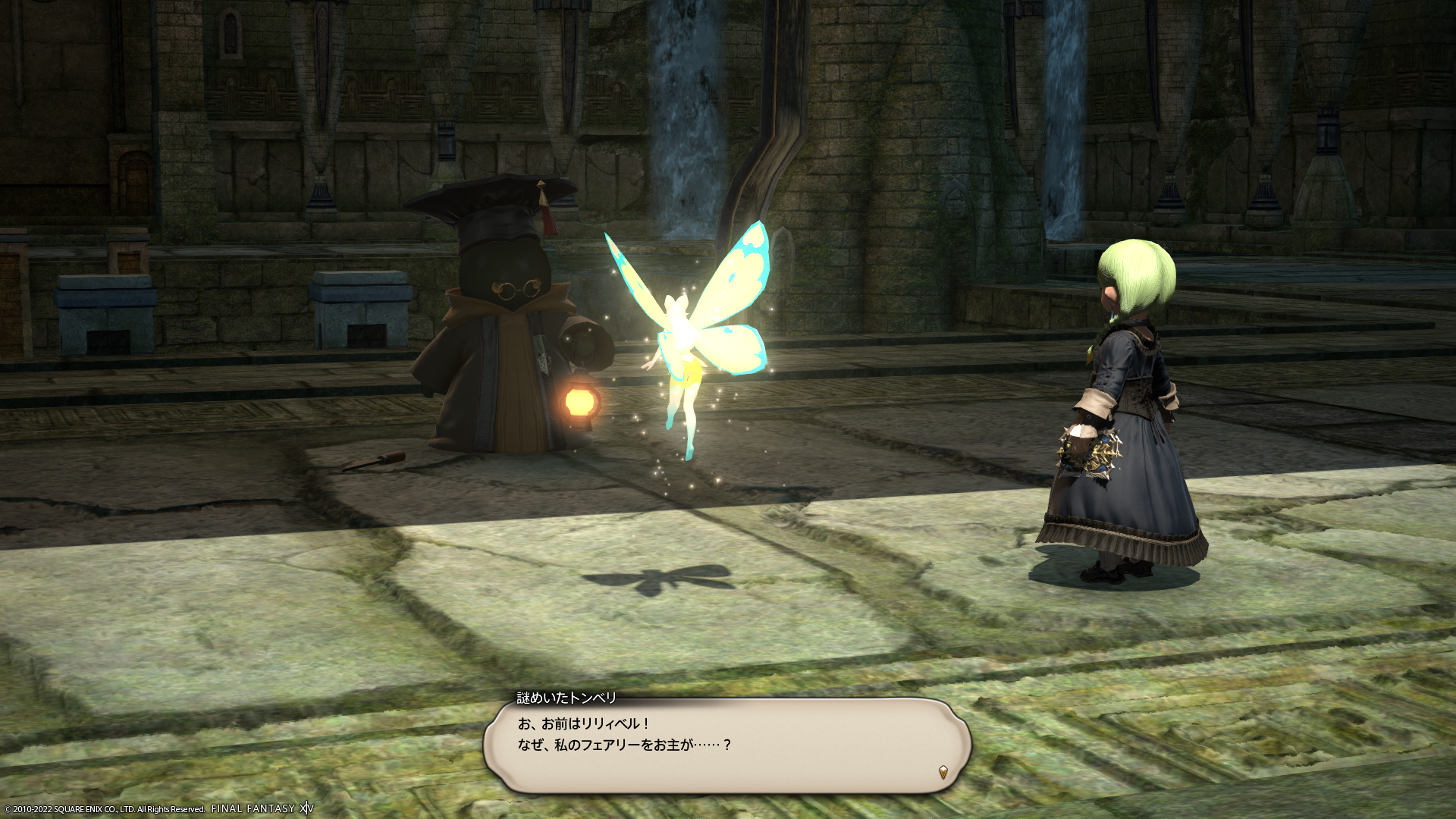 奇病の影響で人間からトンベリになってしまったとのこと。ヴァナ・ディールのトンベリさんも、もともと人間だっていう話がジラートミッション?で出てきましたよね。グラビトン・べリサーチさんでしたっけ…。