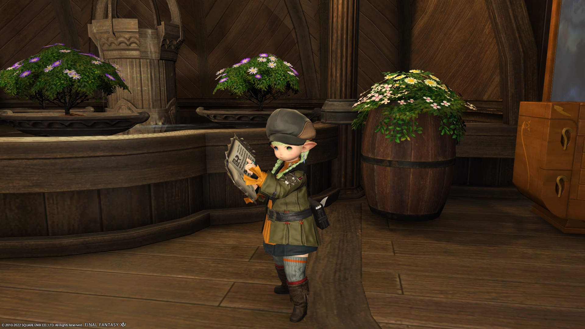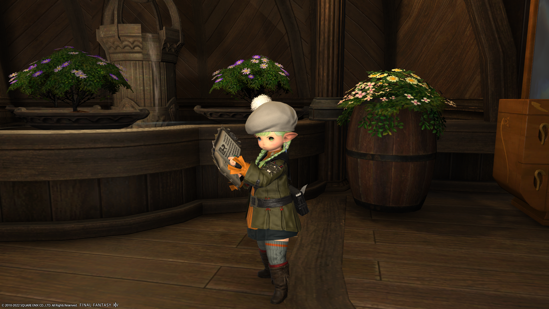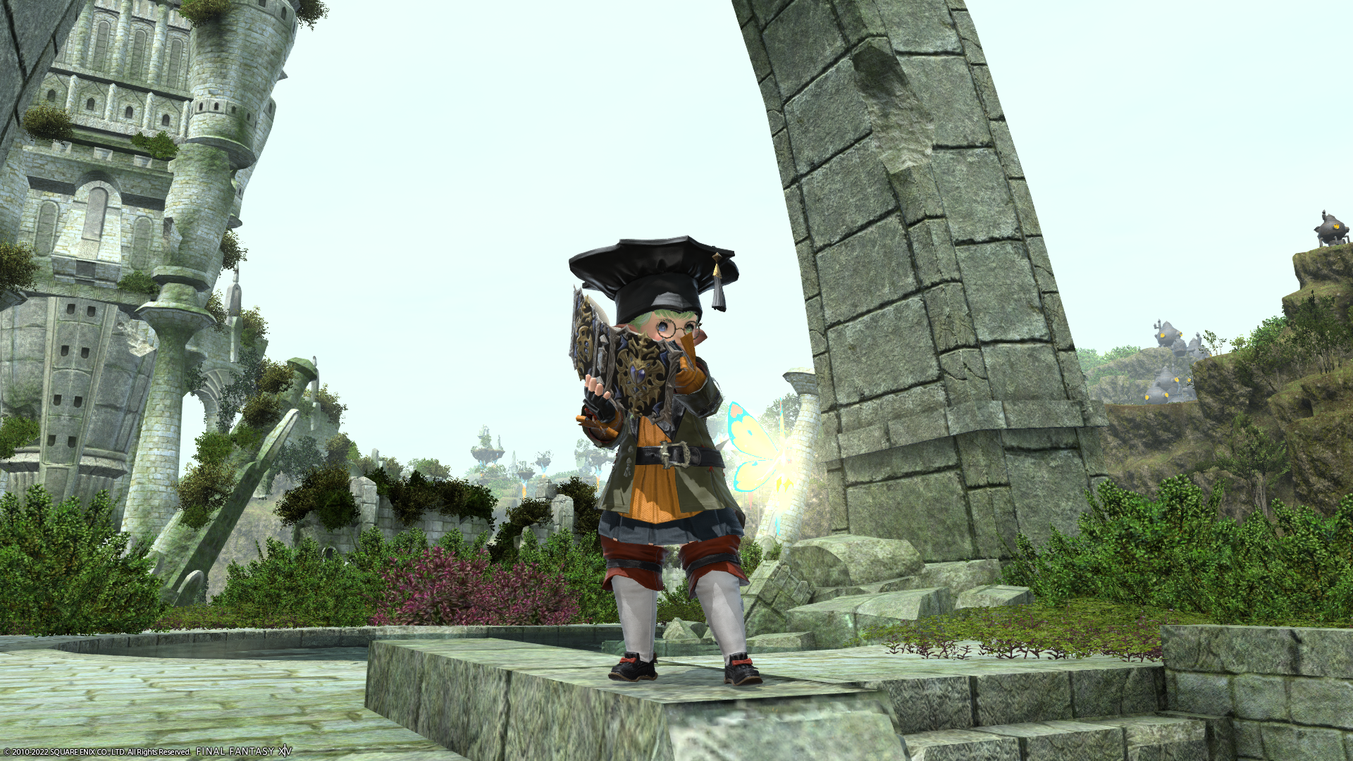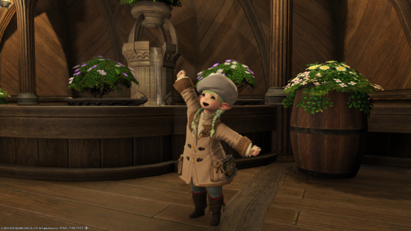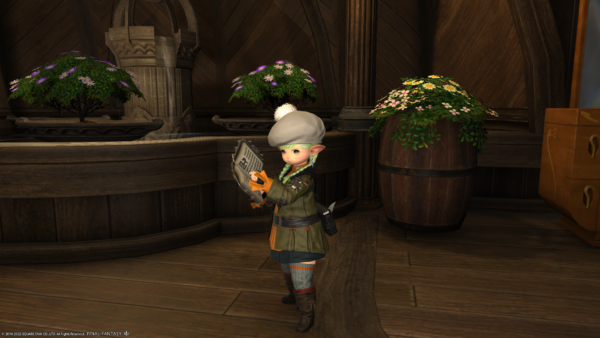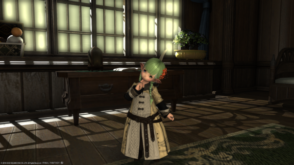 それから、グランドカンパニーに納品しようと思い「アラガントームストーン:詩学」と交換でもらった装備品。Lv的に実践で着たりしないけど、試着してみたら見た目が結構かわいいかもって思ったので、ちょっと活用してみることにー。