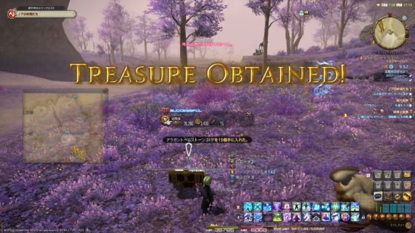 FCメンバーんさんたちと宝の地図ツアーをするため、日々せっせとG12の宝の地図を掘っております。地図にはRareがついているので、同じグレードの地図は1つしか持てないのですよね。なので、リテイナーに持ってもらったり、チョコボかばんに入れたりしているのだけどもうこれ以上もてないよー。