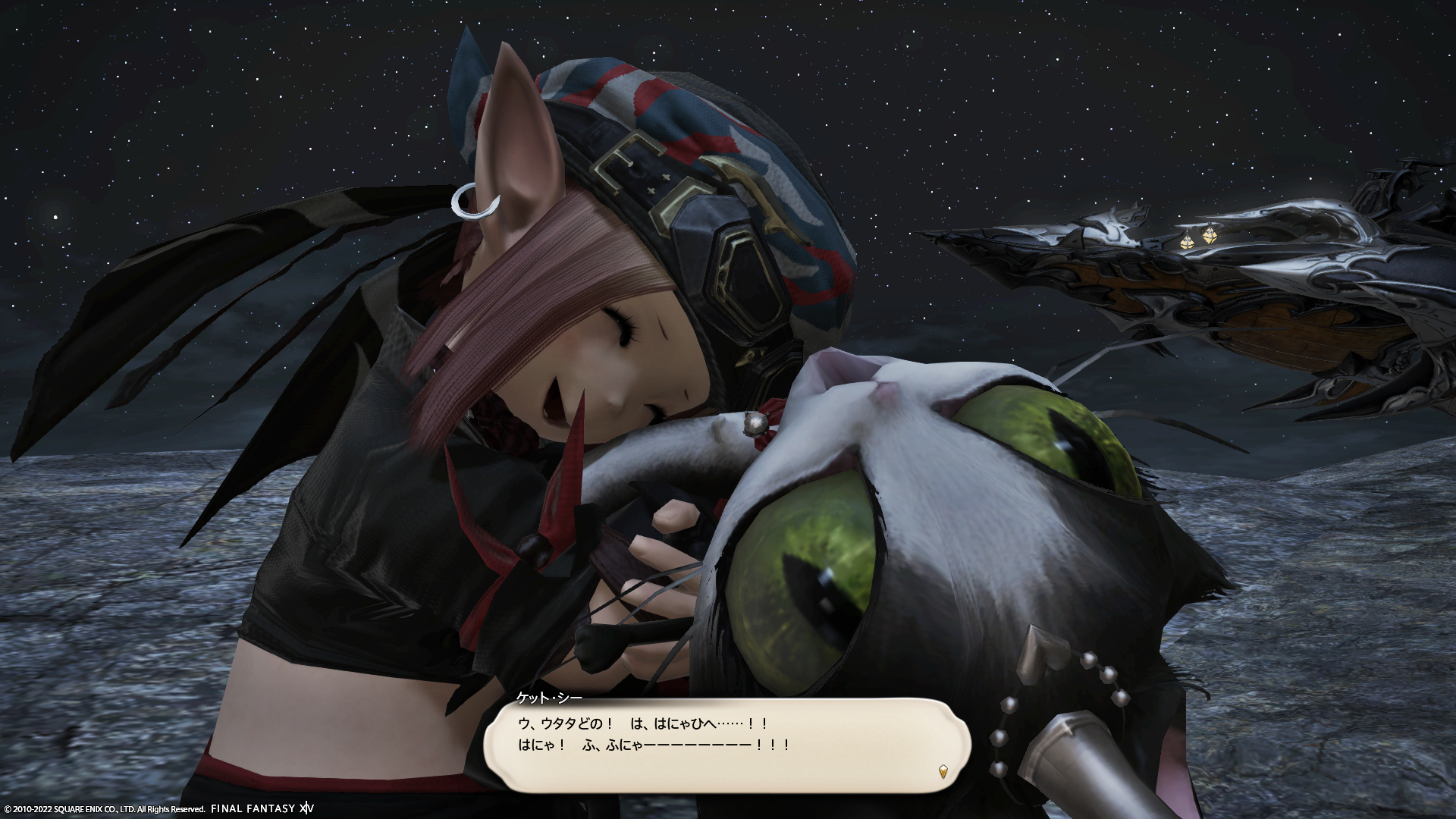 このイベント、ケット・シーがでてくるのだけど、ヴァナ・ディールのおねぇっぽいケット・シーと全然違って、おじいちゃん設定でとっても違和感でした。ヴァナ・ディールだと、「だわん」とか「ねぇ」とかちょっと特徴的な言葉使いだけど、エオルゼアのケット・シーは普通の話し方。