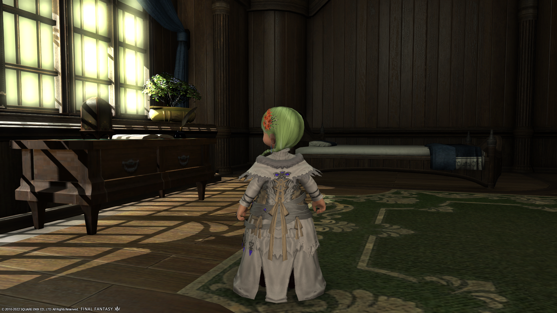 エオルゼアの装備ってけっこうリボン付いてるの多いですよね、この装備も後ろにいっぱい付いてるー。