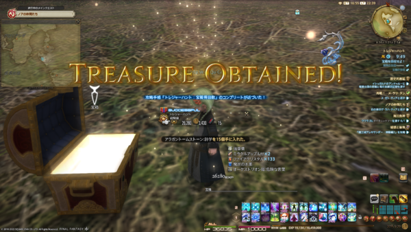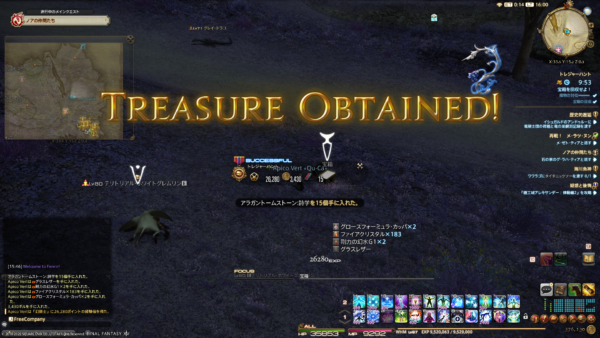 で、エオルゼアでのアレキサンドライト入手方法の1つが、「古の宝の地図(アラガントームストーン詩学と交換)」の宝箱からだそうで。早速地図を使ってみると、宝の在り処が中央ラノシアだったのですよ。