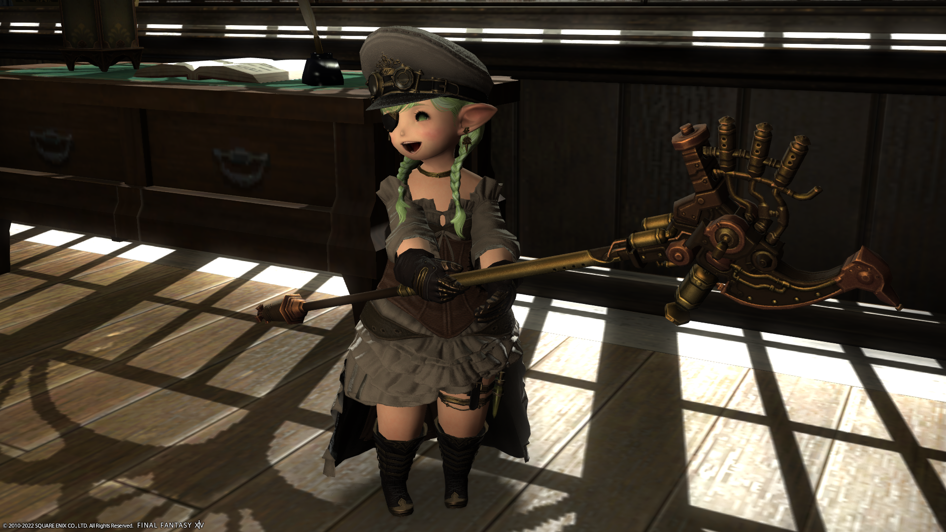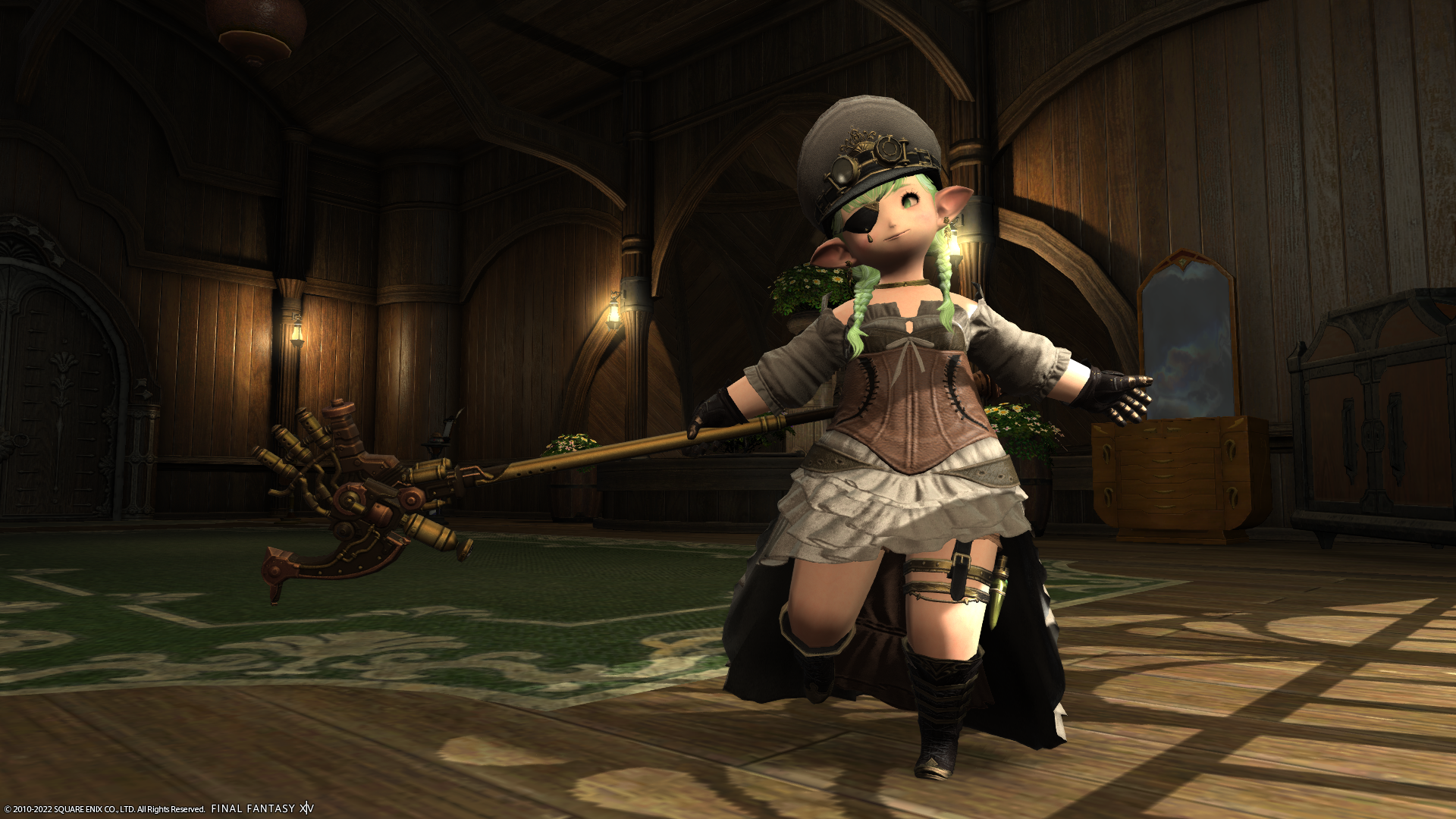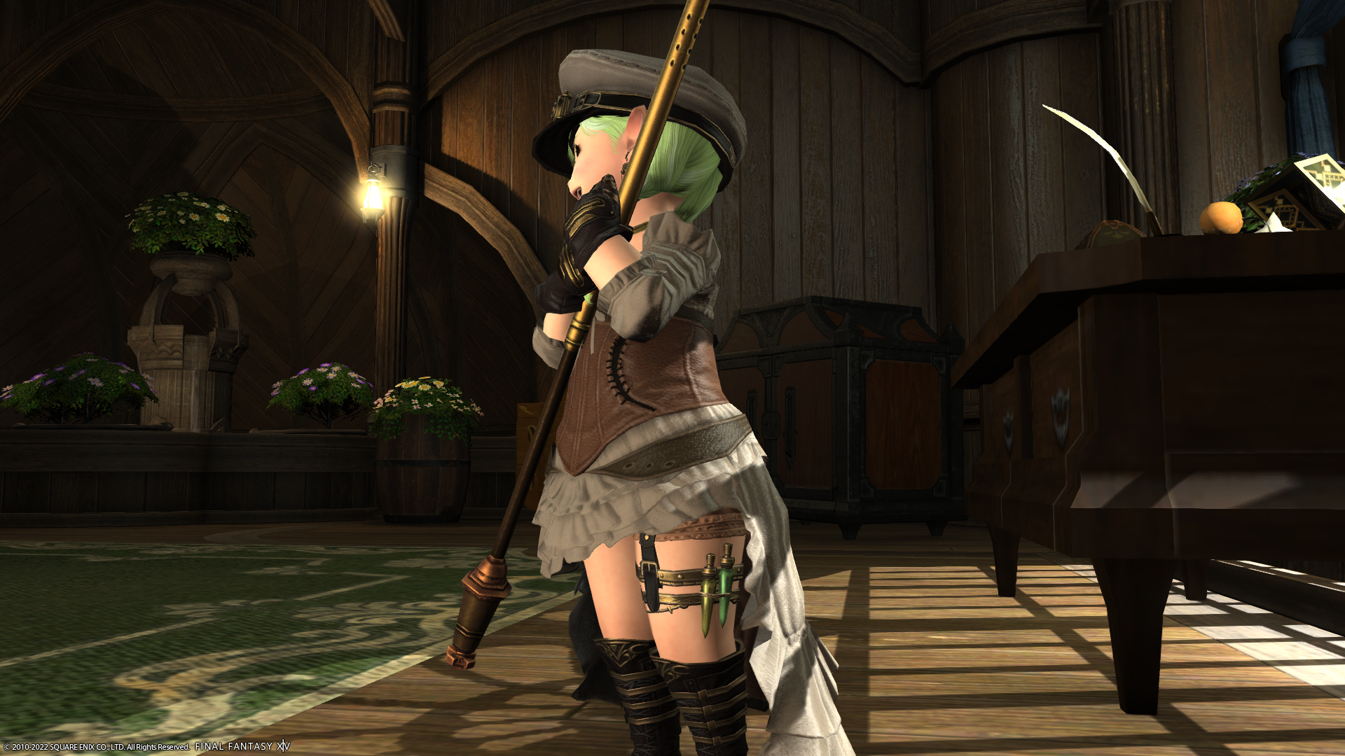 ふともものに装着しているものはなんだろう…ガーターベルト的な感じで付いてるっぽいけど、ララフェルだとまったく色気がなくて健康的?でいいですね!