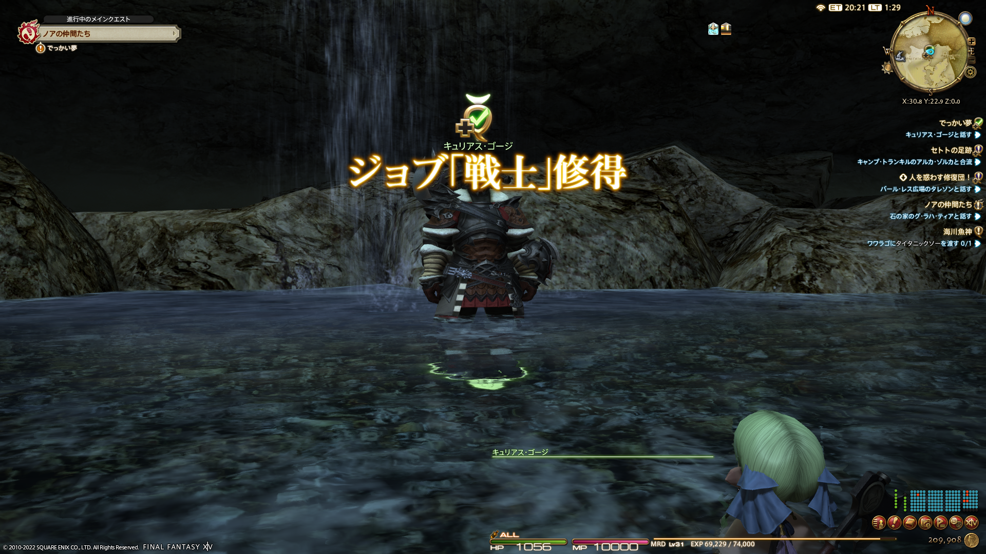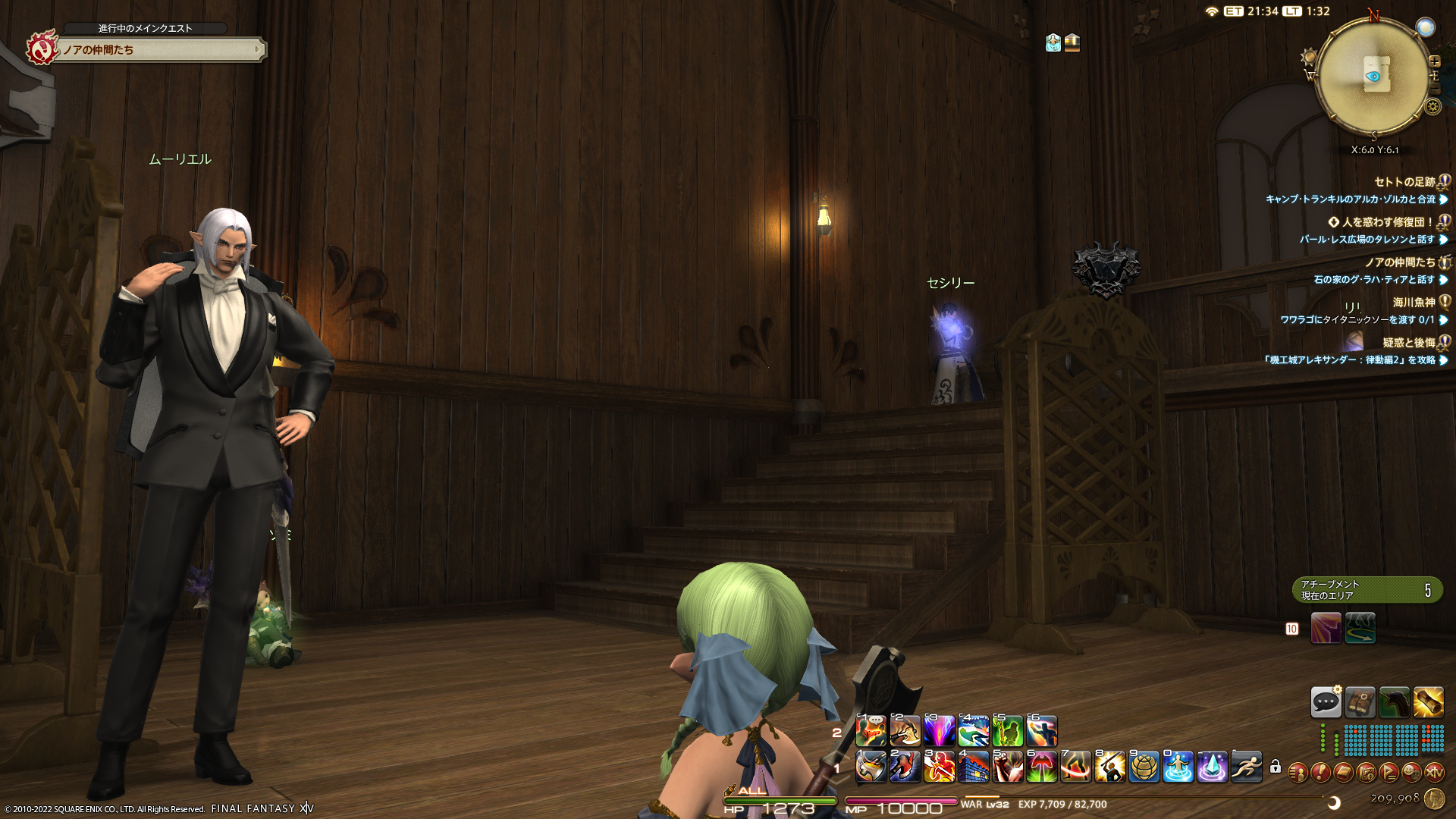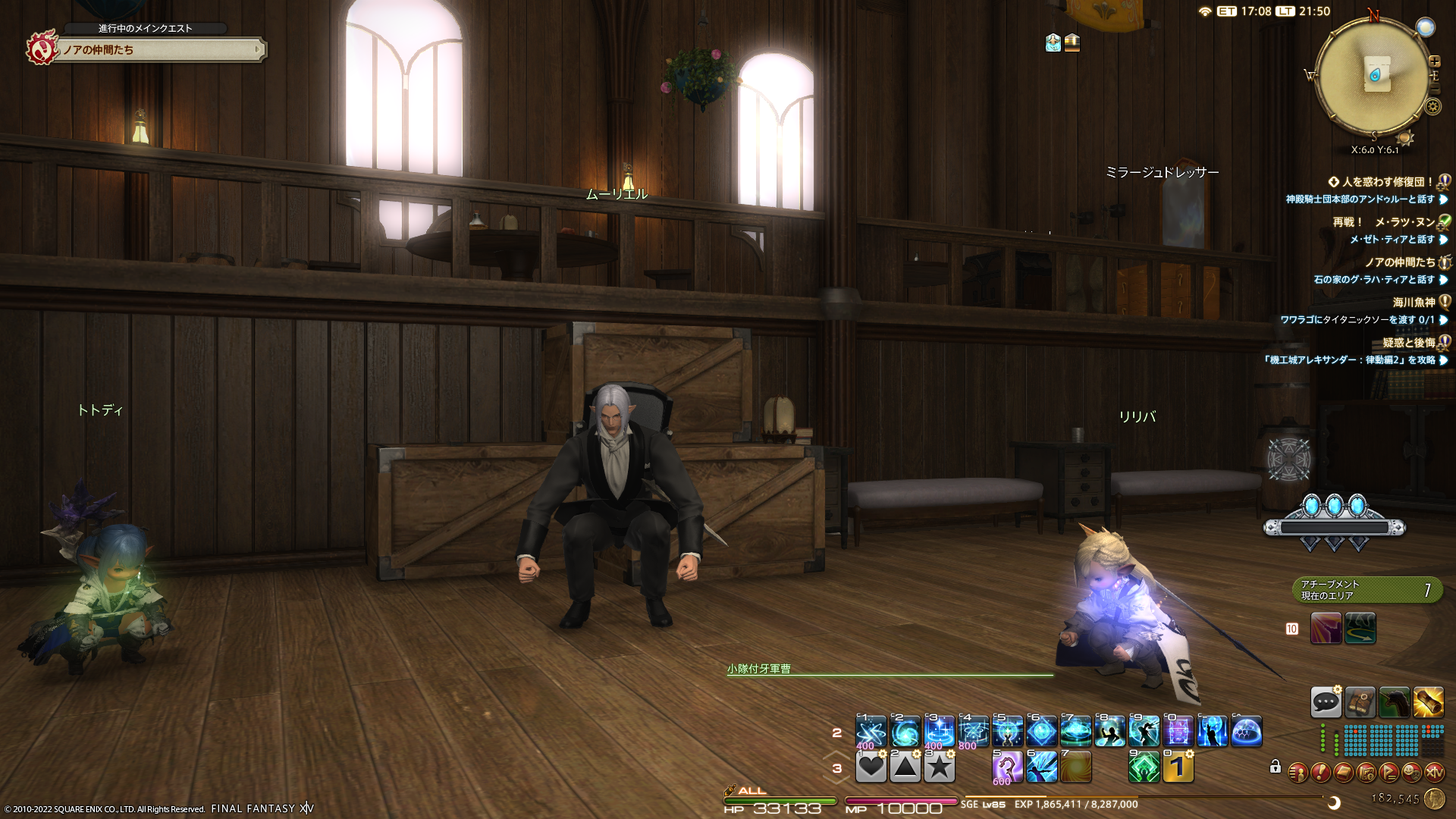 うちの冒険者小隊のメンバーであり、ララフェルたちのお守役でり、ララフェルたちの執事役でもあるムーリエルさんに、戦士になったよーと報告しておきました。ちなみに、ムーリエルさんは剣術士です。