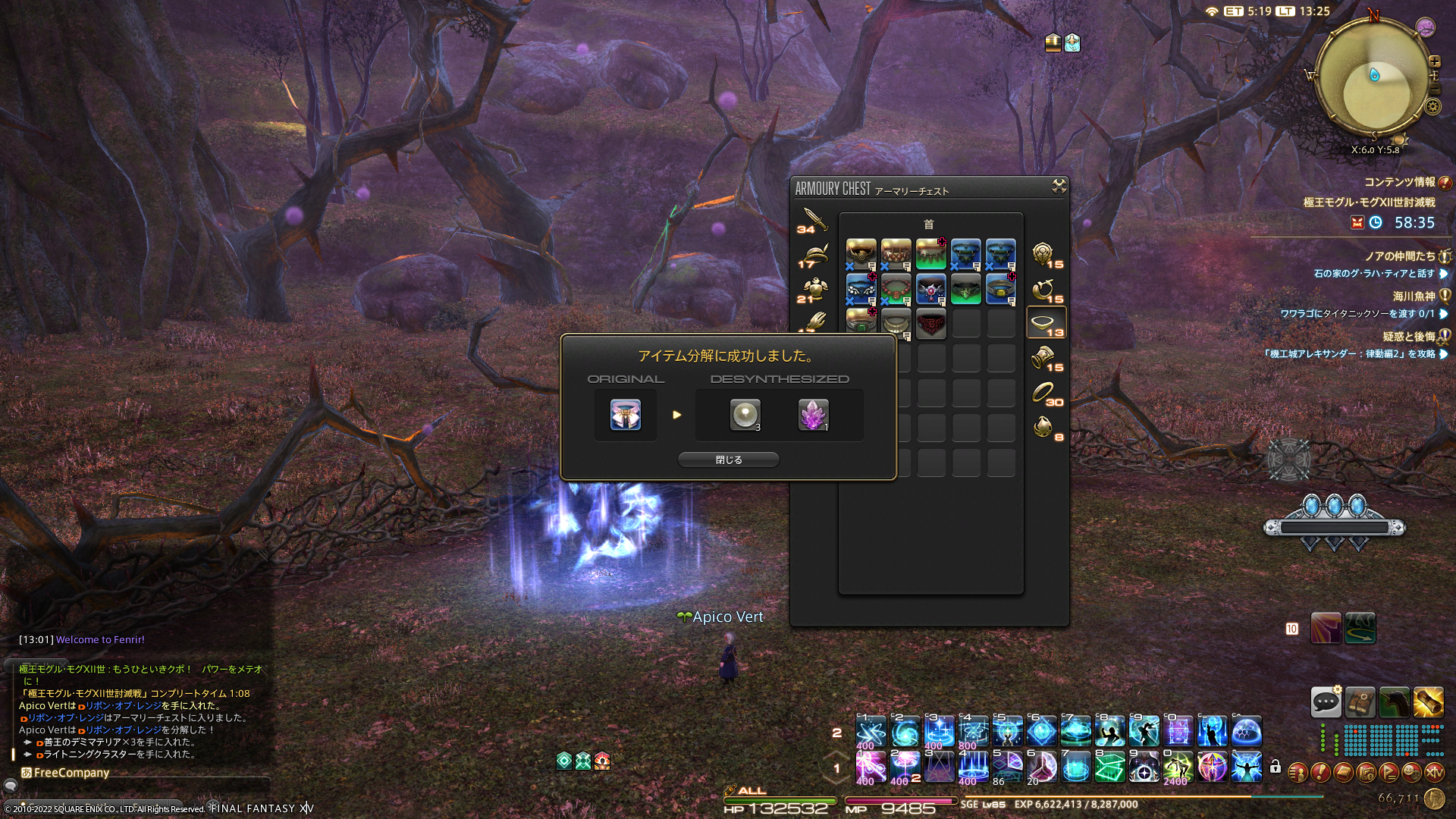 さて、昨晩もちらっと行ったけど目的達成ならずだったので、極王モグル・モグXII世討滅戦へ。宝箱からでる首装備分解で得られる、善王のデミマテリアが目的です。これが、なかなか出ないんだよねー。
