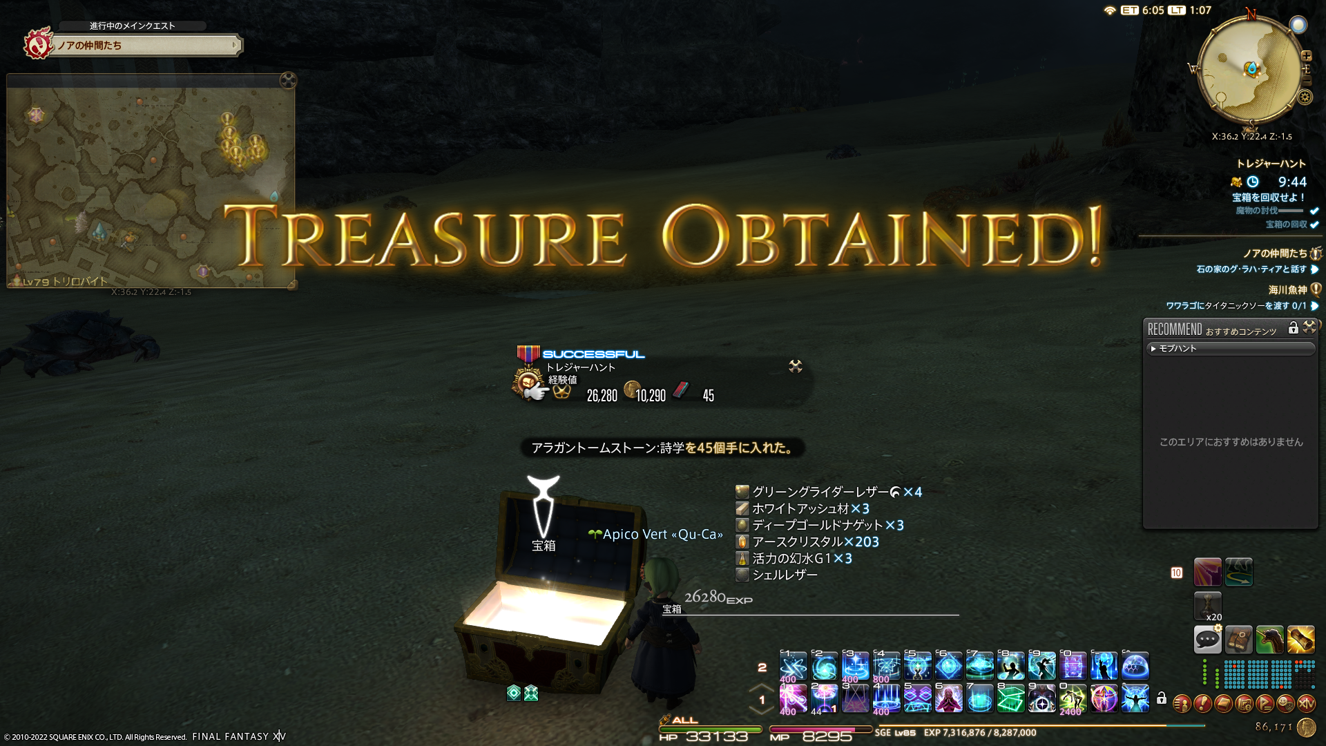 アイテムもたくさん出た上にギルもいつもの3倍の額。しかもシェルレザーまででてうきうきです。HQの素材が出るのも珍しい気がします。