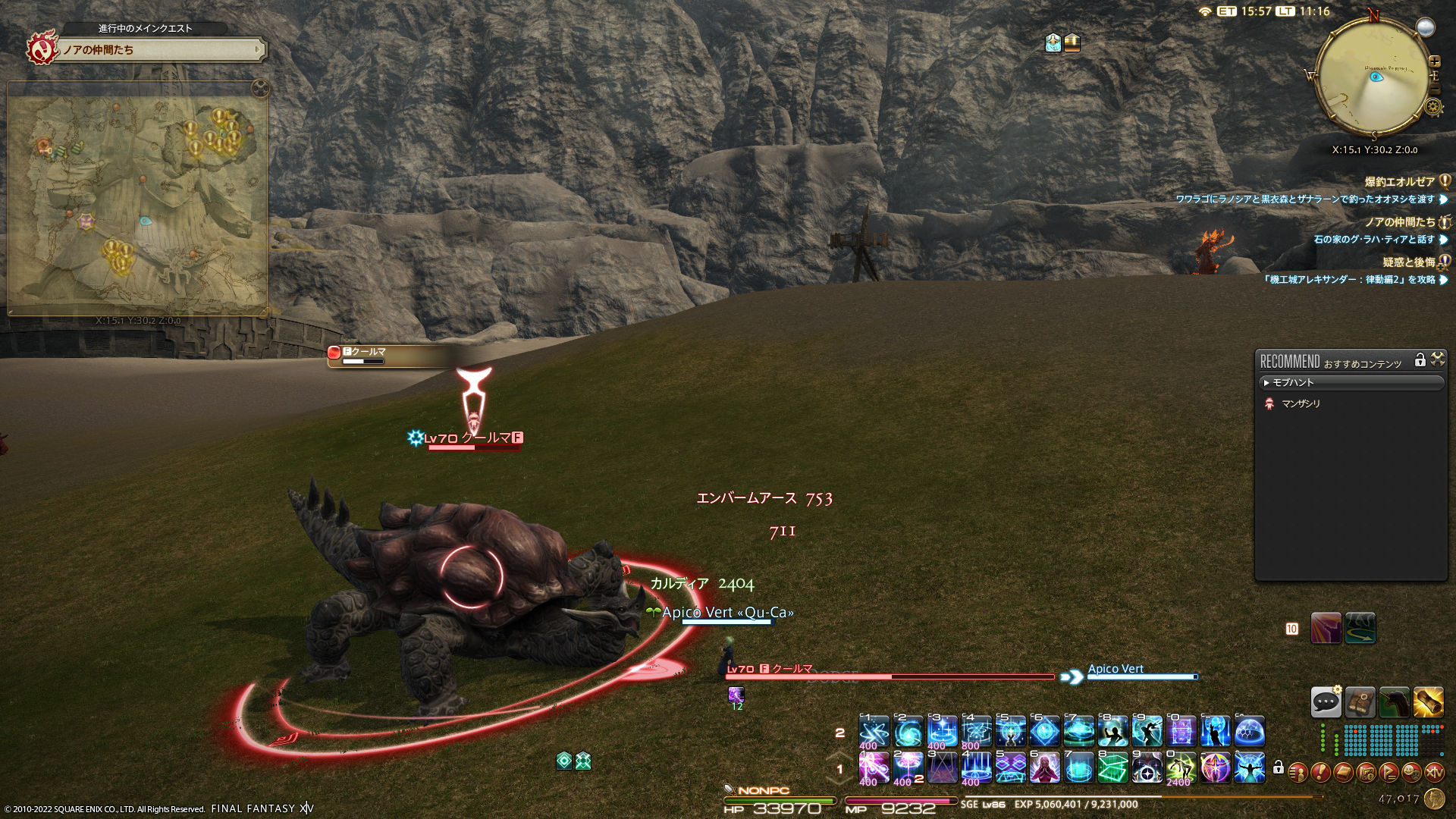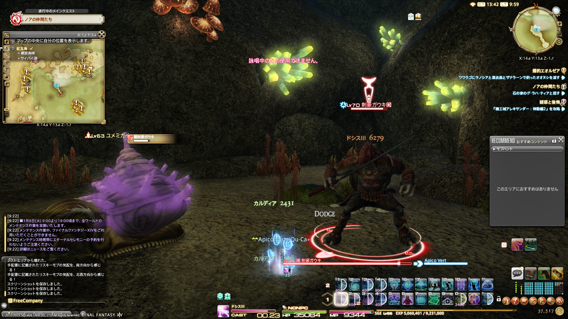 若干おろそかに成るのが紅蓮エリア。ギラバニア方面とクガネ方面で2エリアに別れているのと、クガネ方面が遠い…。