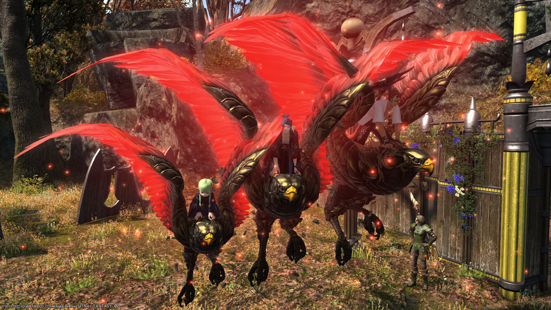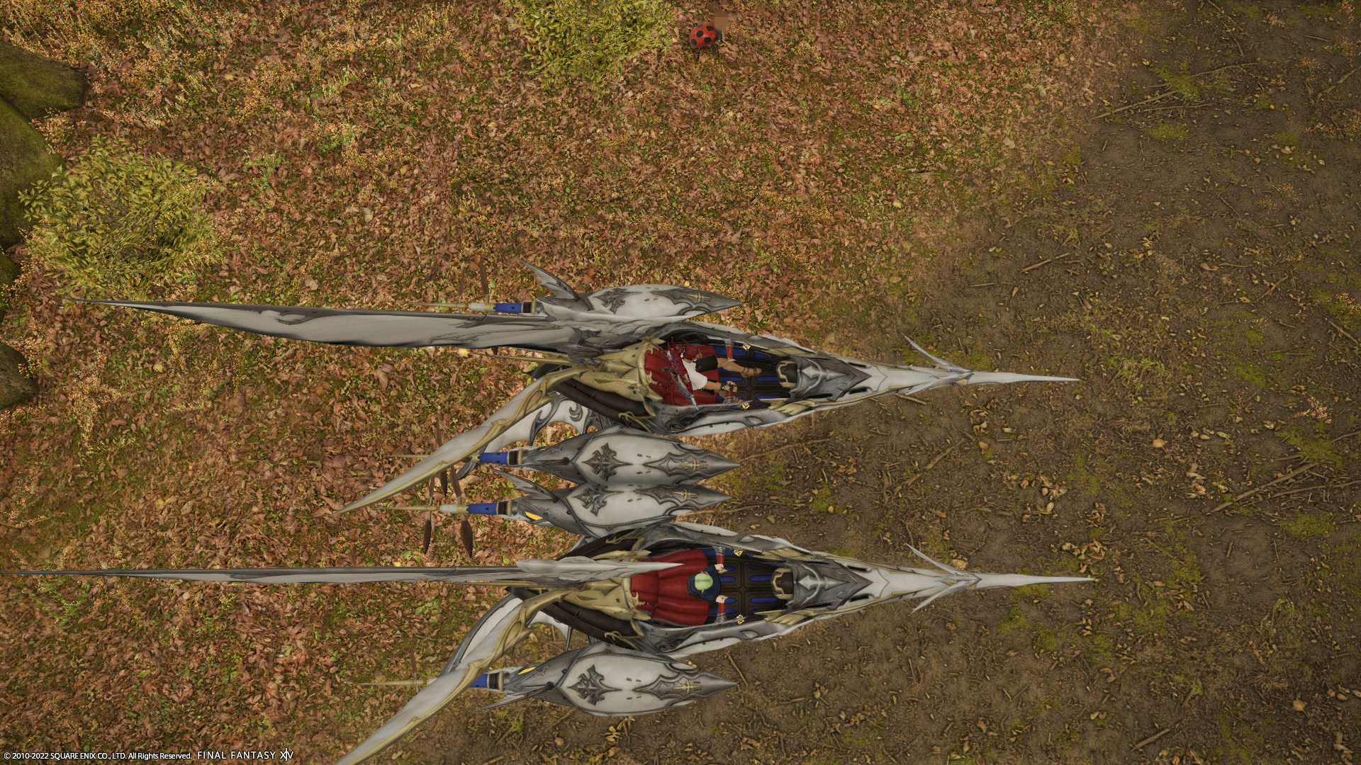 わたくし普段から蒼天エリアも漆黒エリアも徒歩(マウント)で移動することが多いのです。グリダニアからだとわりと近いので。紅蓮エリアもギラバニアはグリダニアから近いので徒歩で移動しちゃうけど、クガネ…クガネ方面が遠い…。
