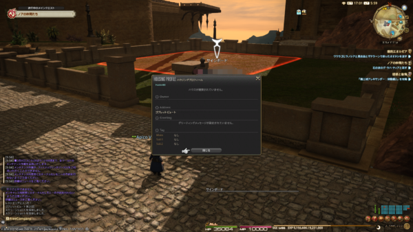 ということで、FCメンバーのミコッテ♂さんが変な装備を着用しがちなので、新たなアイテムを取り入れていただくために紫水宮へ!