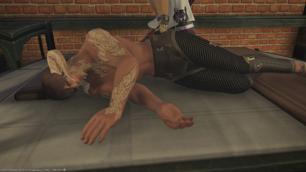 クリスタリウムをウロウロしていたら、ベッドに横たわるアウラ♂さんを見つけてしまいました。