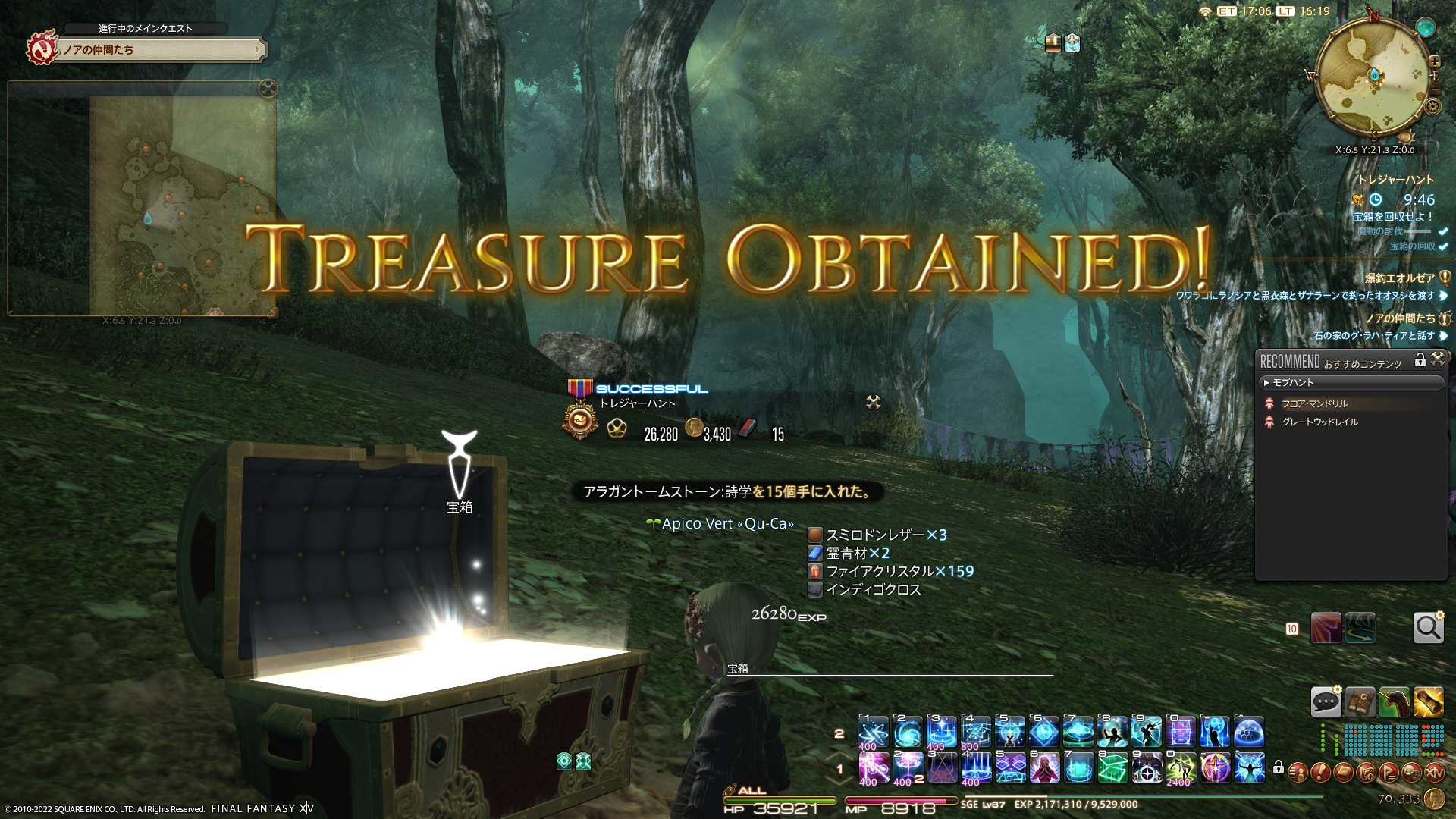 あと、トレジャーハントついでに漆黒エリアの「+」の青いマークの付いたクエストをちまちますすめております。