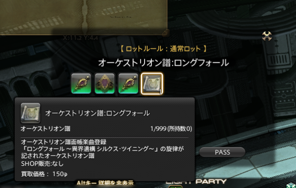 って読んでしまう、ヴァナ・ディールの民たち。お目当てのオーケストリオン譜がでたよー。ロンフォールではなく、「ロング」フォール。「グ」が多い。