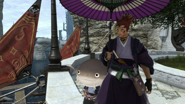 FCメンバーのミコッテさんが和傘を持っていたので、お着物を着てもらいました。