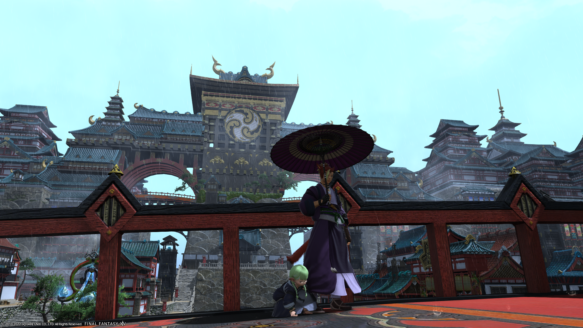 雨の中しゃがみ込むララフェルに傘を差し出す的な!?