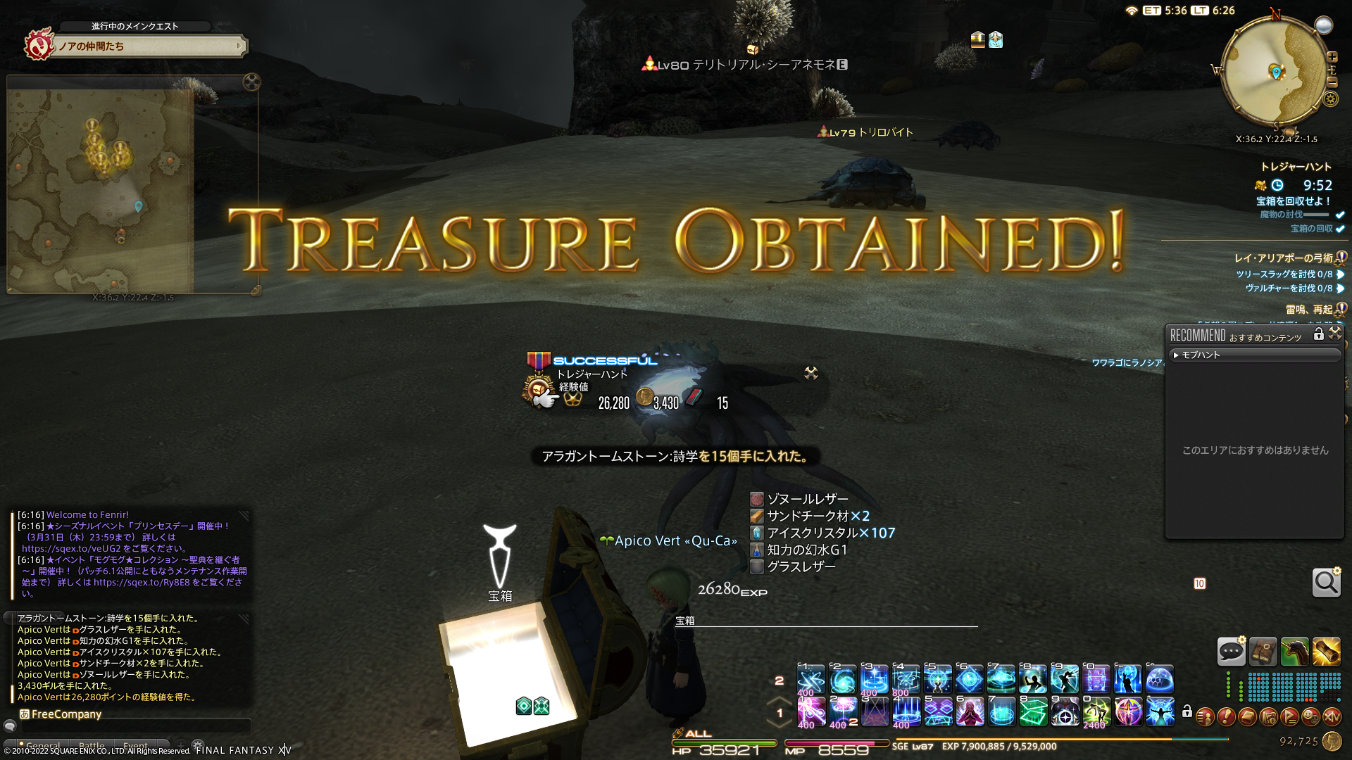 日々のトレジャーハントの宝箱から出たアイテムのうち、クリスタリウムのギルドリーヴで納品に使えるものはせっせと納品したりしております。
