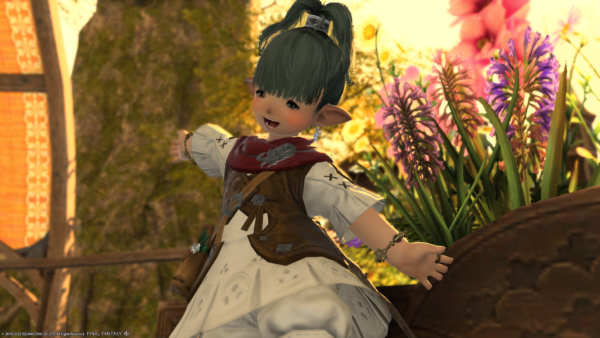 ララフェルは、プレーンフォークとデューンフォークという種族がいて、この子はプレーンフォーク。本体はデューンフォークになります。瞳がガラス質みたいにつるっつるでなにもないのがデューンフォークなので、目を見るとすぐに見分けられます。