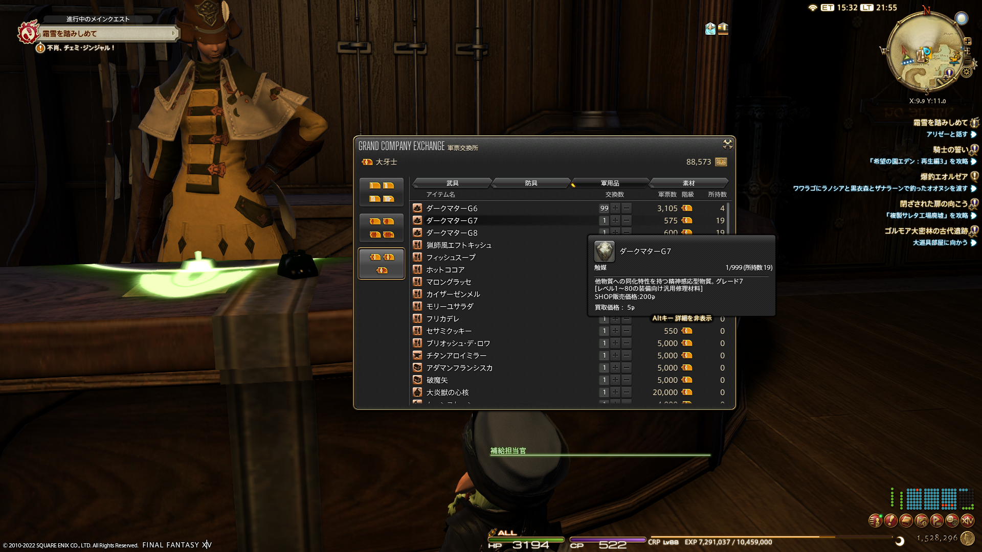 ダークマターG6はギルでも買えるけど、軍票と交換できるので軍票で交換しています。