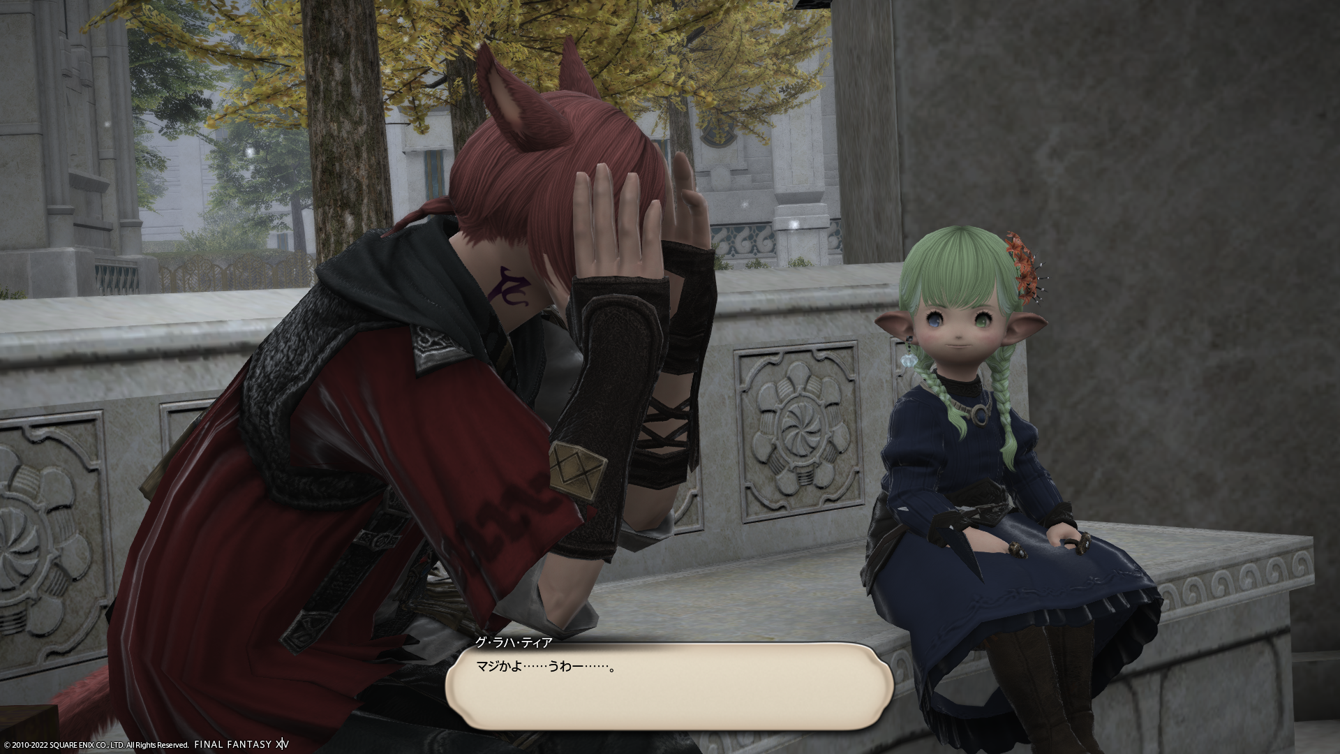 今回タタルちゃんの出番がかなり少ない気がするのは気のせいでしょうか…。これまでだと砂の家とか石の家とか、ウルダハ商館とか、拠点となるところがはっきりしていたのに、暁月シナリオだとそういう場所がなくてタタルちゃんのところに戻らないのですよね。