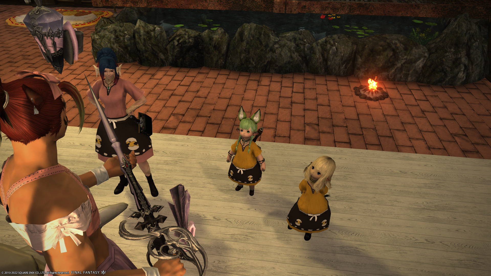 アウラさんが「スカートは染めないんだ」と言ったのを、離席中のミコッテ♂さんはあとからログを見たようで。わたくし、しばらく離席して戻ると…
