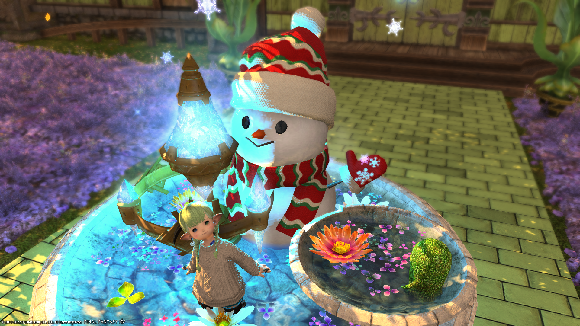 こちらはマウントに乗った離席中のFCメンバーさんなのだけど、キラキラ雪の結晶のエフェクトもでていてかわいいなー。クリスマスシーズンにはずっとお庭に立っててもらお…う…か…な……。嘘です><。