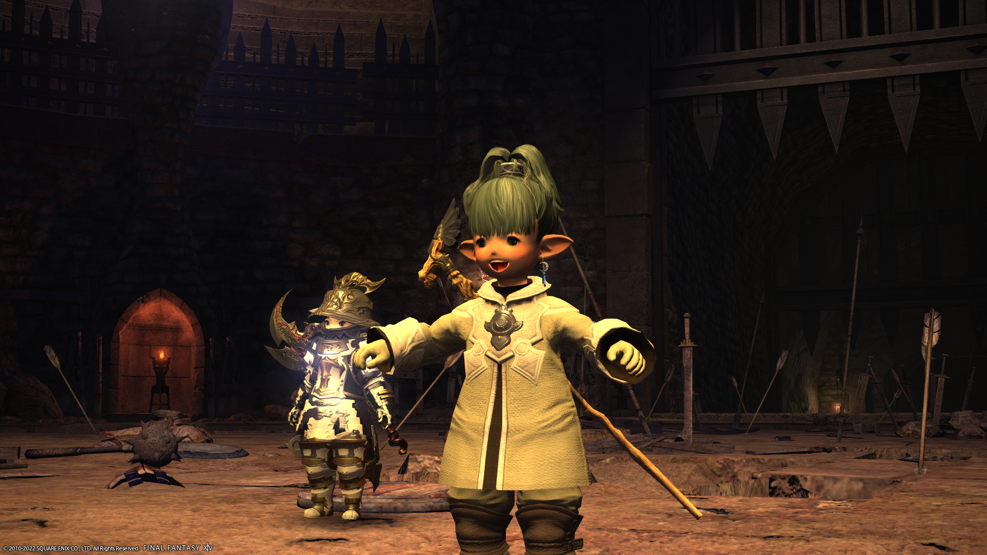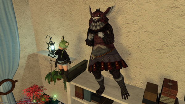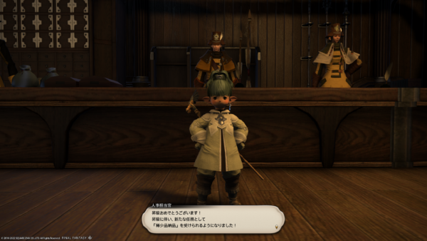 グランドカンパニーのランクを上げるのに、討伐手帳のランク1の敵を倒さないと行けないのだけど、その対象になっていたのがこのハタラリ修練所の敵でした。制限解除でソロで入ってみたのだけど、Lv30ちょいではボス戦がちょっと無理だったのでFCメンバーさんに手伝ってもらいました。