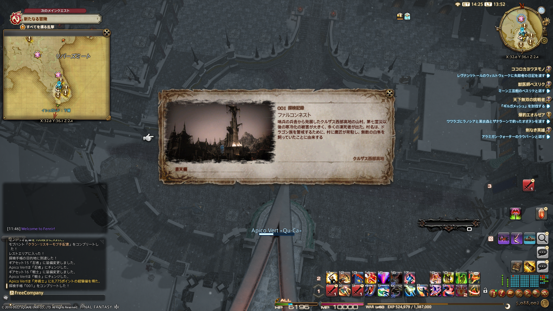 クラフター系のクラスクエストをちまちまこなしているのだけど、本日は錬金術をすすめることに。必要な素材があったので、イシュガルド周辺に採りにでかけたところ、探検手帳のポイントがあったのでチェック。