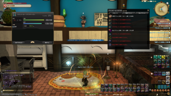 実は今日、素材を作るのにいっぱい失敗してしまって。なんとかHQの素材を作りたくて手動で製作をしいてたら、工数足りなかったりして何度かぱりんしちゃったのですよね。なので、やっとでここまでたどりついたーーーっと。