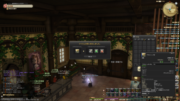 クラフター系の装備品を分解したときに得られる素材なのですが、必要数がたりません。マーケットを見ると3000ギルちょっと。なかなかのお値段だなー。
