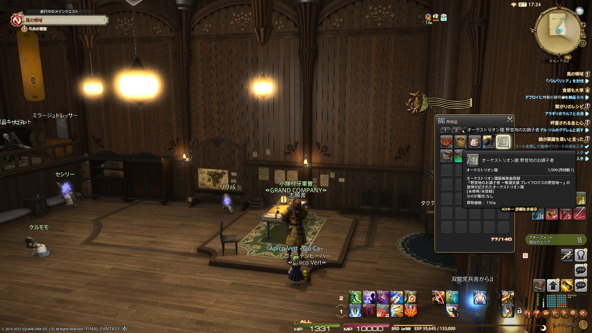 倉庫ちゃんのクラフト業のため、蒼天エリアまでは行こうかなとちょこっとメインクエスト進行。