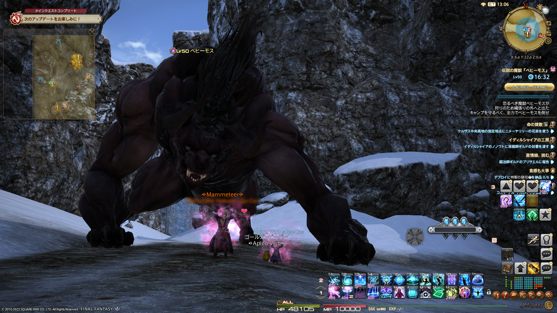 双蛇党の階級を上げるのにダンジョンにゆきたかったので、フリーカンパニーの方にお願いして無双モード(制限解除)で突入してきました。