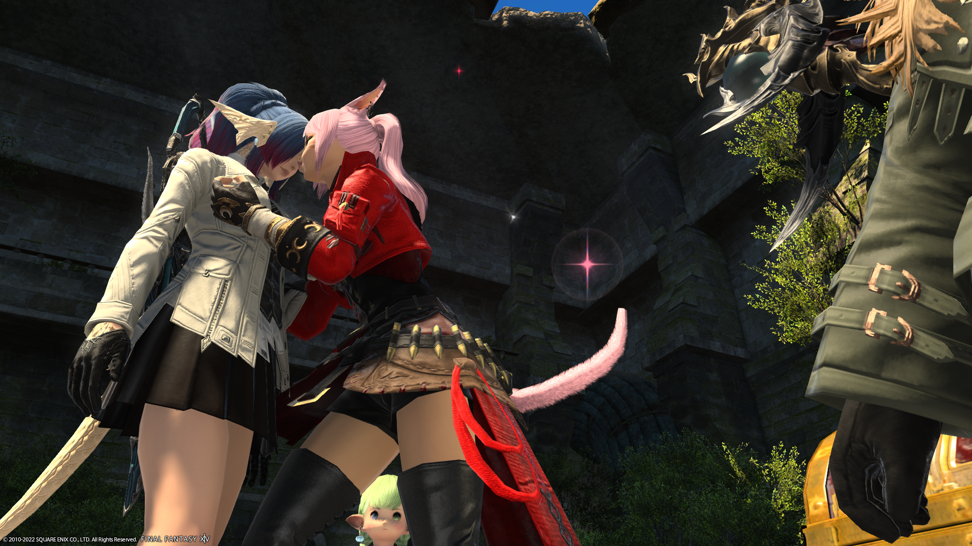 ウィンクしてきゃわいいポーズを決めるあざといミコッテさん(左)
