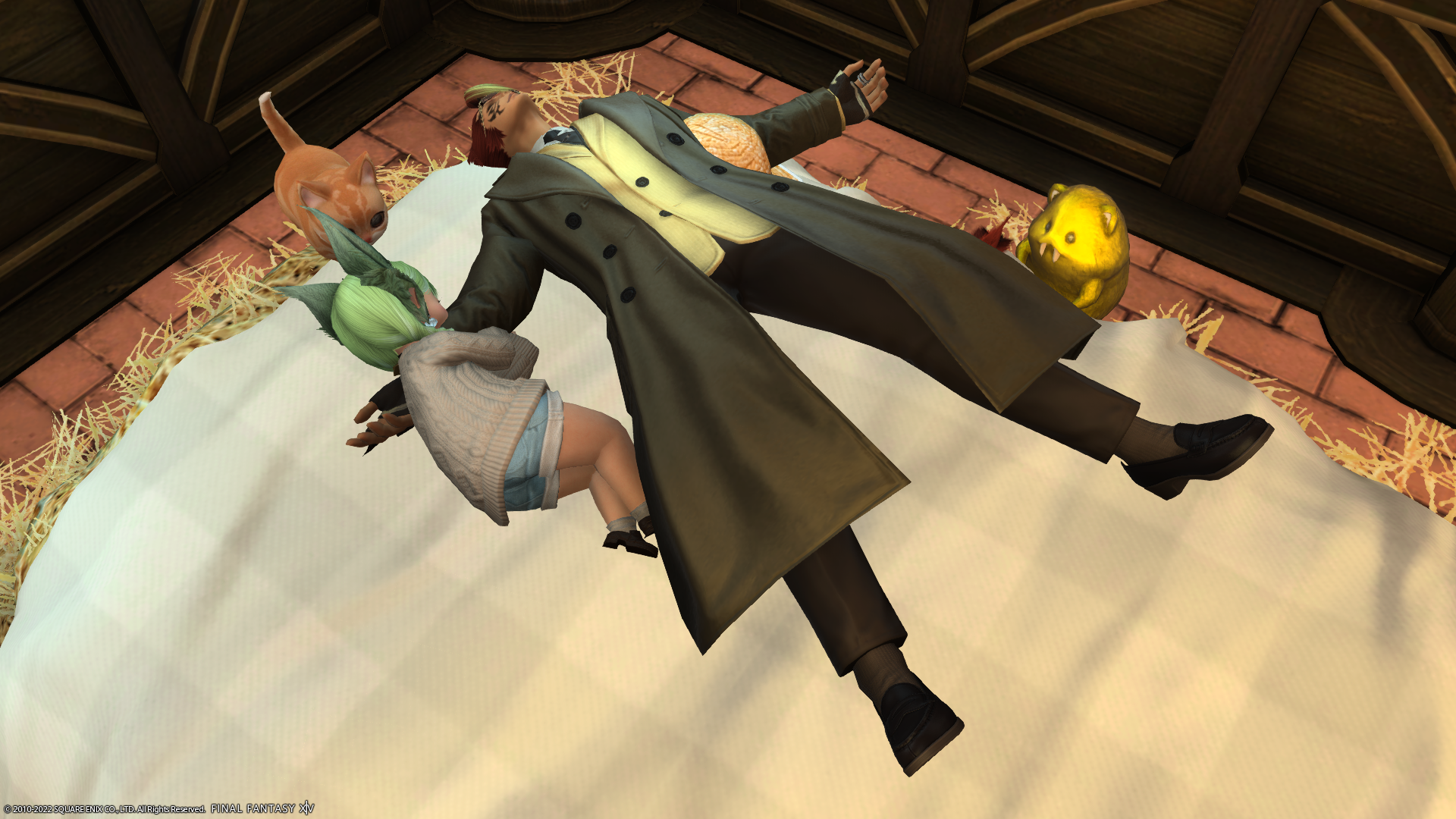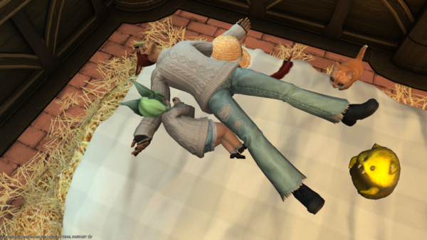 ハイジのベッド 投稿日時: 2022年10月26日 投稿者: zuizui 無人島の専用ポイントで交換できる、ファーマーズベッドをもらってみました。 ハイジのベッドーっ!! せっかくたくさんのふっさふっさのワラを敷いているから真ん中で眠ればいいのに…ってちょっと思っちゃいました。 ふかふかベッドで気持ちよく眠っていると… ミコッテさん乱入;; その上… ペアルック的な衣装に着替えられてしまいました。 ぐすん。