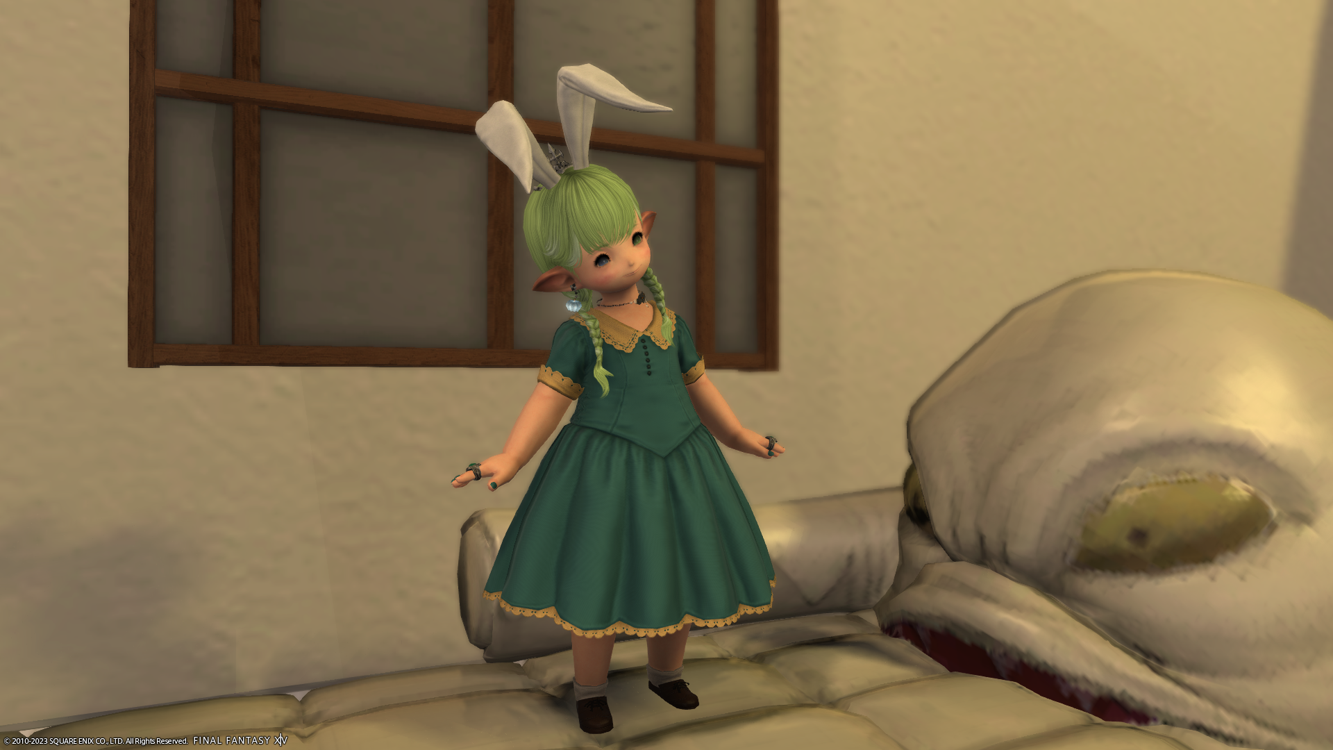 昨年末、フリーカンパニーメンバーさんから編み込みカチューシャというヘアスタイルをいただいてから、編み込みカチューシャにしておりましたが、本来のおさげに戻してみました。