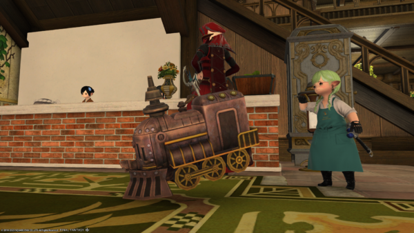 昨年末くらいから、フリーカンパニーメンバーのミコッテさんが、フリーカンパニーの潜水艦に力を入れておりまして。メンバーのアウラさんが欲しがっている豆列車というミニオンの素材をようやく拾ってきたそうで、わたくし素材を預かって豆列車作らせていただきました。
