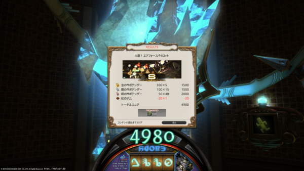 これに触ると報酬をいただけました。報酬はディープダンジョンのNPCにわたすとアクセサリーや家具と交換できます。アクセサリーを3部位集めると、めちゃめちゃかっこいいマウントを貰えるらしく…家具も欲しいので、あと3回…あと3回クリアせねば!?
