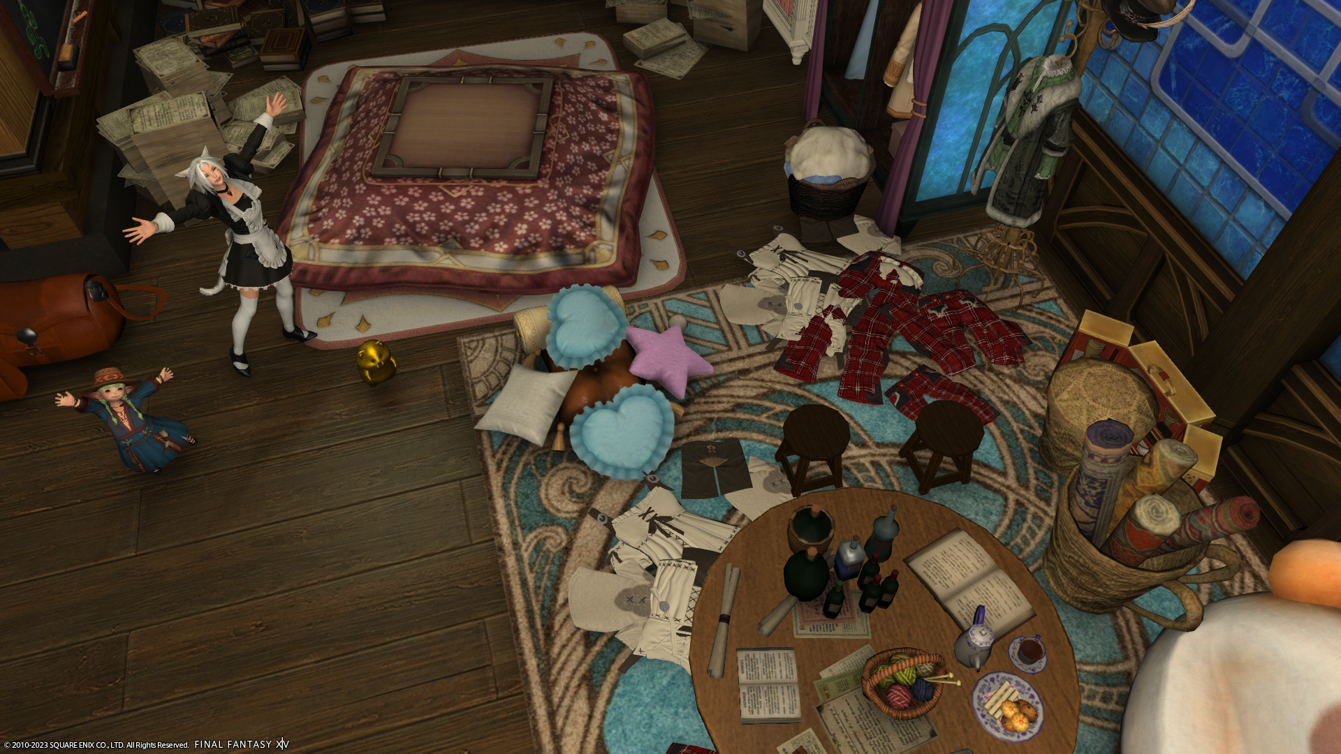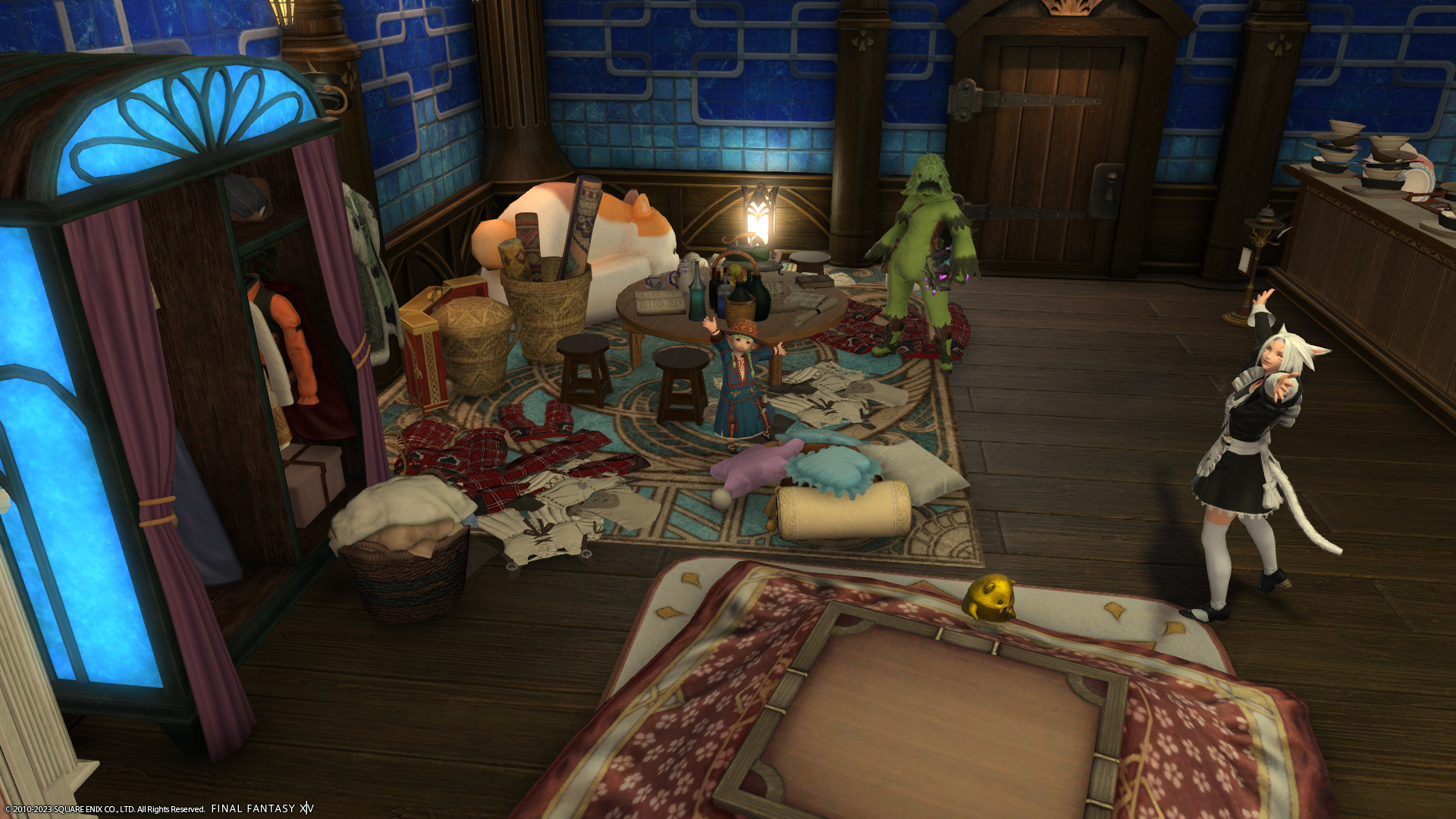 このお部屋の持ち主のミコッテさん、いつもお洋服もこだわってておしゃれなのですよね~。いいな~、センスがあって。事前に言ってくれれば片付けたのにとおっしゃってましたけど…