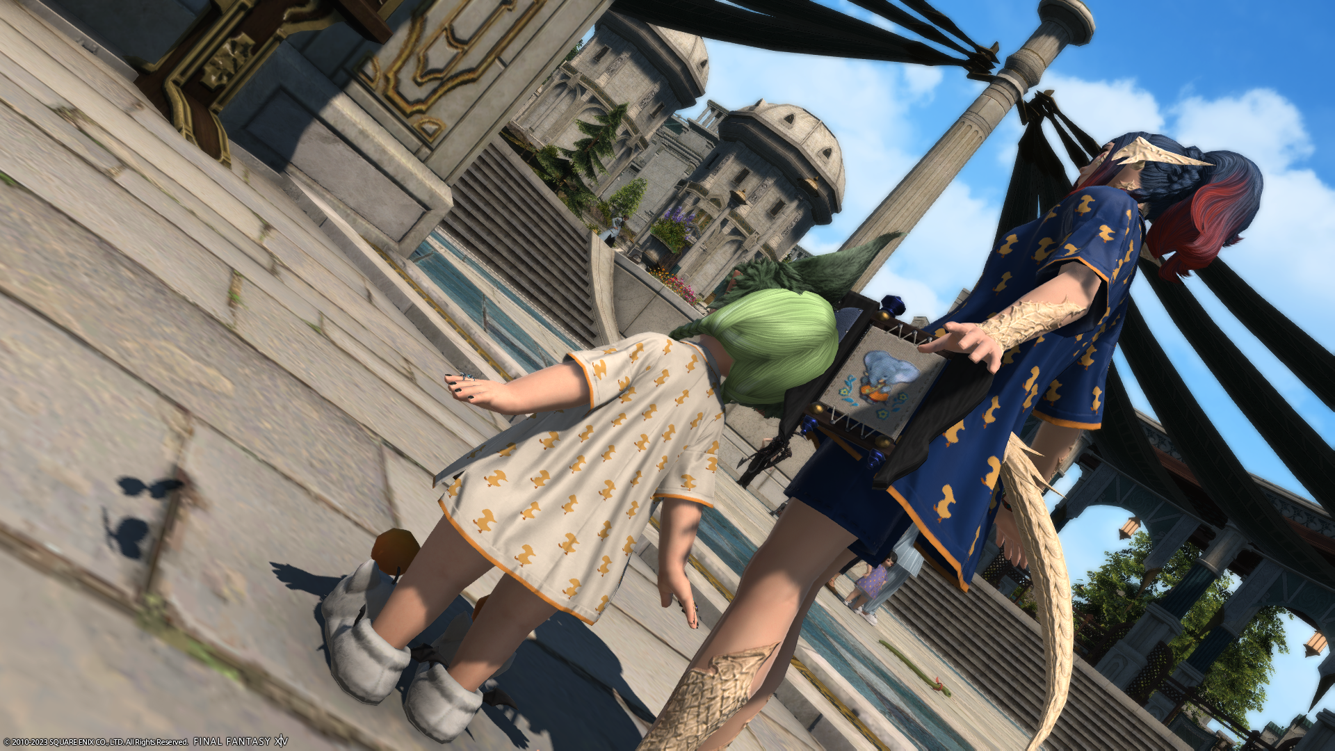 ちなみにわたくしが履いているモーグリのスリッパ、これどこで手に入れたんだっけと忘れていたのだけど、調べたらモーグリ族の友好部族クエストを進めると、購入できるようになる装備品でした。